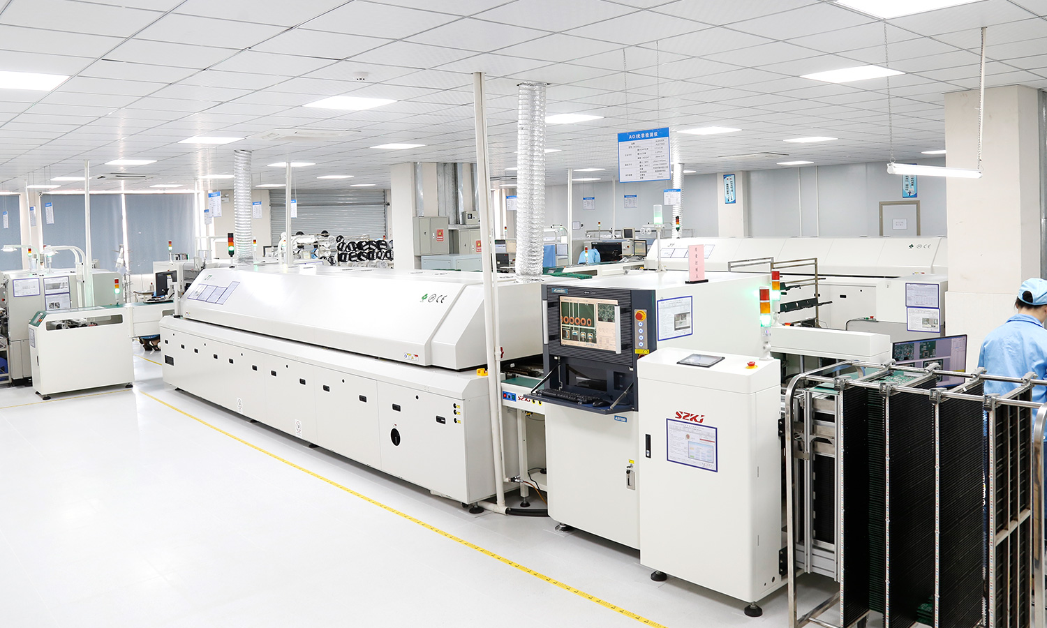现有4条SMT贴片生产线,配备全新进口YAMAHA,YSM20R YSM10 YS24 YS12 、全自动锡膏印刷机、十温区回流炉、AOI、SPI等高端设备,贴装产能1200万点(CPH)/天,尤其擅长高精密、复杂度高的板子。